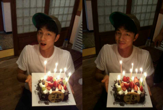'빅' 제작보고회를 통해 "18세 사춘기 소년의 감성을 표현하는 것에 부담을 느꼈다"고 밝힌 바 있는 공유는 흰 티셔츠, 모자를 반쯤 비틀어 쓴 채 익살스러운 표정을 지으며 케이크를 들고 있는 사진을 공개했다.