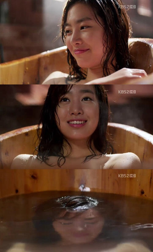 화장기 없는 투명한 얼굴에 각시탈 생각으로 행복한 미소를 지어가며 목욕을 즐기는 진세연의 모습은 청초한 소녀감성을 풍기며 남성 시청자들의 마음을 흔들었다.