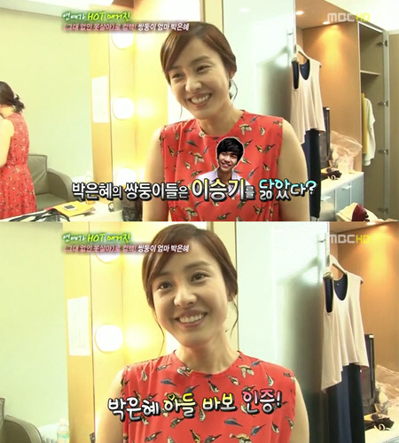 또한 박은혜는 "첫째가 이목구비가 아빠를 많이 닮아서 우리끼리 이승기를 닮았다고 한다"며 "태교를 할 때 이승기를 닮았으면 좋겠다고 생각했더니 좀 닮은 것 같다"며 아들 바보를 인증했다.