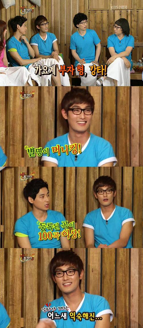 이에 MC 박미선이 "작곡한 곡이 많나보다"며 은근슬쩍 물었고 이지훈은 "강타는 저작권 협회에 100곡 이상의 곡이 등록돼 있다"고 덧붙여 놀라움을 자아냈다.