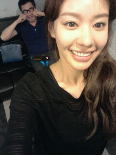 김아중은 1일 자신의 트위터에 '팬미팅 노래 연습 중. 우리 매니저 상현씨와 찰칵!'이란 글과 함께 한 장의 사진을 올렸다. 환하게 웃어 보인 김아중은 빼어난 미모를 뽐냈다.