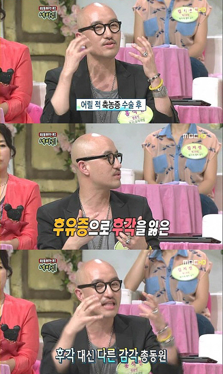 방송인 홍석천이 어릴 적 후각을 잃은 사실을 고백했다.