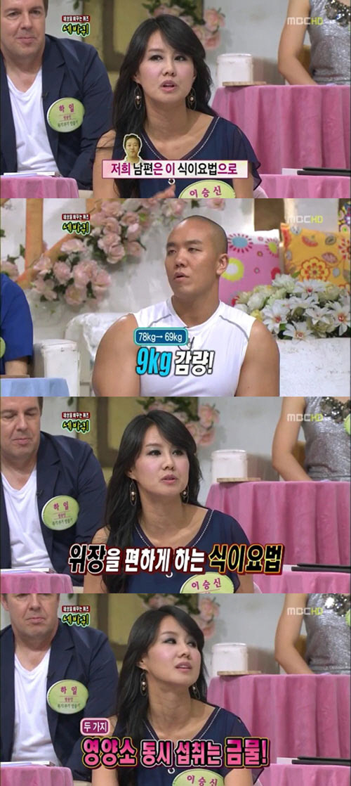 탤런트 이승신이 남편 김종진과 함께 실행중인 식이요법을 공개했다.