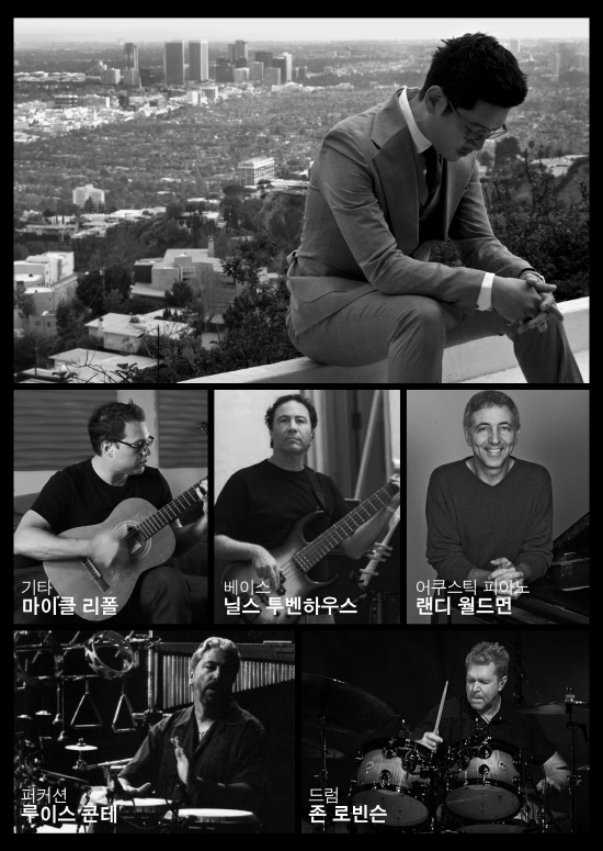 src='https://pagead2.googlesyndication.com/pagead/js/adsbygoogle.js'> class='mobile-ad' style='width: 100%;height: 270px;margin: auto; text-align:center;'> isMobile2 = window.matchMedia('only screen and (max-width: 768px)').matches; if (isMobile2) { document.write(' src=//ad.doorigo.co.kr/cgi-bin/PelicanC.dll?impr?pageid=0F6H&out=script><\/script>'); } 드러머 존로빈슨은 마이클 잭슨, 머라이어 캐리, 에릭 클랩튼, 등 세계적인 뮤지션의 음반에 참여했으며, 역사상 가장 많은 레코딩 경력을 자랑하는 유명 뮤지션이다. 기타리스트 마이클 톰슨(Michael Thompson)과 마이클 리폴(Michael Ripoll)은 데이비드 포스터, 리키 마틴, 크리스티나 아길레라, 안드레아 보첼리, 토니 블렉스톤을 비롯 스티비 원더, 캐리 언더우드 등의 음반에 참여했다.