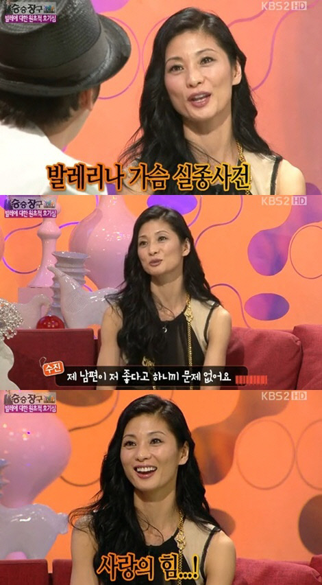 세계적인 발레리나 강수진이 빈약한 가슴에 성형까지 고려했다고 밝혔다.
