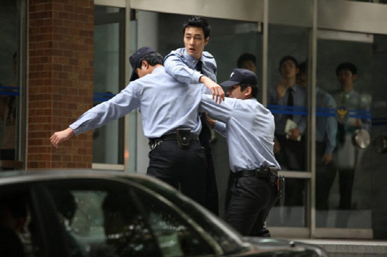 소지섭이 경찰들과 벌이는 '거침없는 몸싸움' 장면은 지난 1일 경기도 용인시 기흥구에 위치한 경찰대학 도서관에서 촬영됐다. 경찰 정복을 입고 앞머리를 살짝 올려 '훈남 대학생'의 분위기를 연출해낸 소지섭은 촬영장에 도착하자마자 상대배우와의 완벽한 연기를 위해 동선을 미리 맞춰보는가 하면, PD와 많은 대화를 통해 디테일한 부분까지 놓치지 않는 치밀함을 보였다는 후문이다.