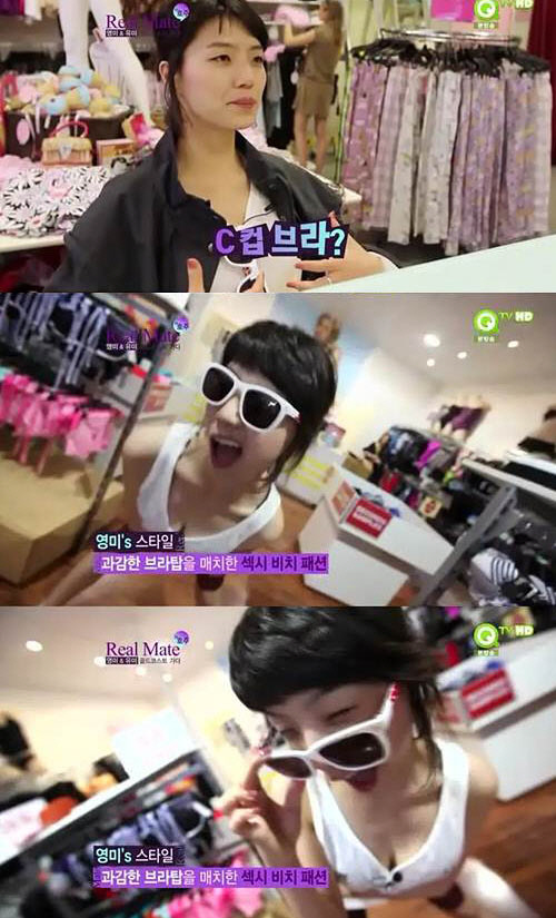 대결을 펼치기 위해 안영미는 한 옷가게에 들어간 뒤 "C컵 브래지어 없냐"며 "섹시한 스타일을 원한다. 모든 남자들이 좋아할 만한 과감한 브라탑이 필요하다"고 자신의 가슴사이즈를 밝혔다.