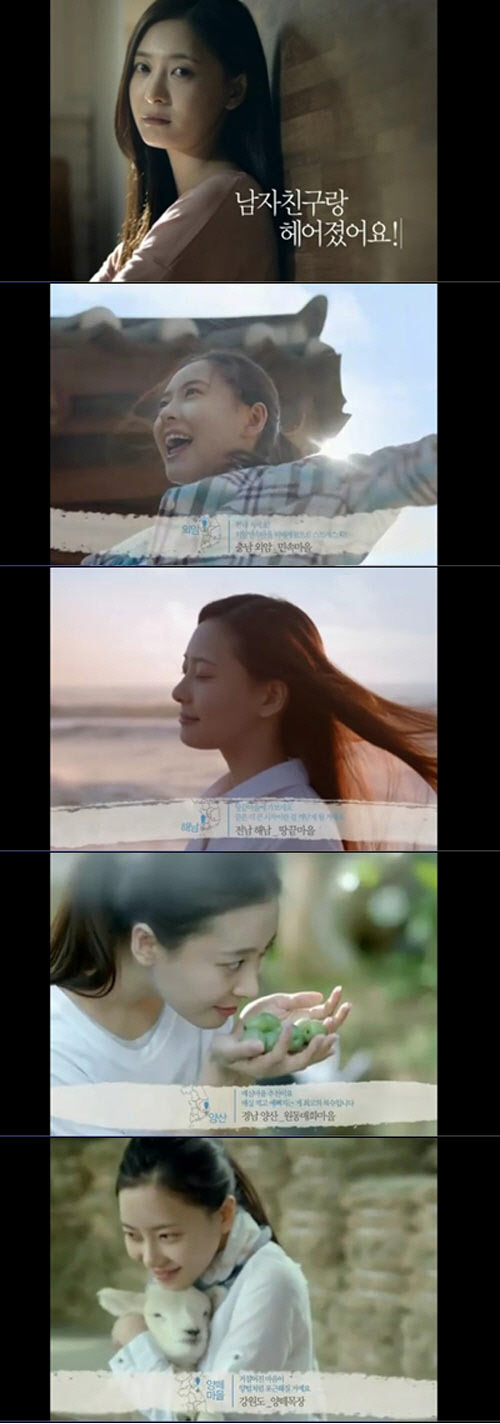 정아율이 출연한 이 광고는 실연당한 여성에게 국내 여행으로 위로할 것을 조언하는 내용이 담겨 있다.