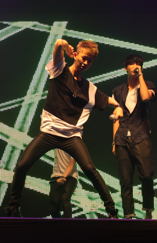 제국의아이들은 17일 광주 염주체육관에서 열린 tvN '코미디빅리그'팀 광주 지역 공연에서 축하 무대를 꾸몄다. 이날 멤버들은 '하트포투'와 '마젤토브'로 신나는 무대를 선사했는데, 파워풀한 댄스를 선보인 민우는 스키니한 하의 라인 덕분에 가녀린 각선미가 드러나 눈길을 끌었다.
