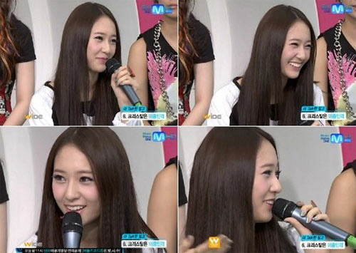 하지만 MC들은 멈추지 않고 '증거 사진'이라며 과거 이특이 트위터에 올렸던 크리스탈의 사진을 보여주며 "시트콤 때문에 이중인격 이미지가 생긴 거냐?"고 물었고 이에 크리스탈은 어떻게 대답할지 몰라 난처해하며 "그런 것 같다"고 말하며 상황을 모면했습니다. 그리고 이런 난처한 질문에 당황한 크리스탈을 위해 에프엑스의 멤버 루나는 "나쁜 뜻의 이중인격이 아니라 무대에서 카리스마 있고 도도해 보이지만 실제로는 굉장히 애교가 많고 막내같다"고 이야기하며 크리스탈의 '이중인격'에 대한 질문에 답변을 해주었고 이후에는 별다른 문제없이 인터뷰가 진행이 되었습니다.