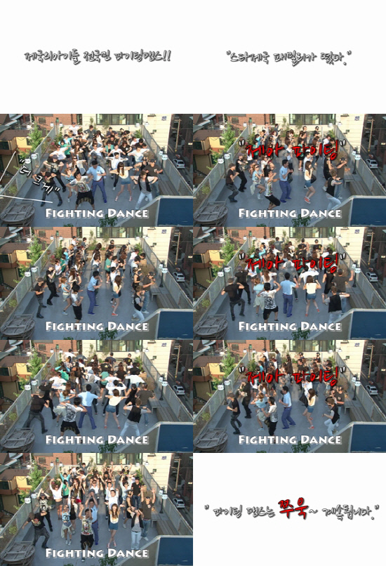 스타제국 관계자는 "제국의아이들을 비롯해 컴백을 응원하는 팬들을 위해 소속사 전직원이 솔선수범해 '화이팅 프로젝트'에 동참하자는 취지로 다들 열심히 춤을 췄다. 처음에는 신주학 대표가 갑자기 옥상으로 전 직원을 불러 모아 회사에 큰 일이 벌어진 줄 알았다"고 밝혔다.