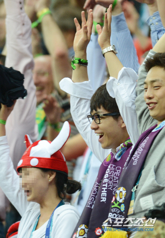 22일 새벽(한국시각)폴란드 바르샤바국립경기장에서 펼쳐진 포르투갈-체코의 8강전 관중석에서 '열혈 축구팬' 이승기의 모습이 카메라에 포착됐다.