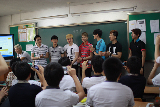 제국의아이들은 22일 천안과 대전 지역에서 '화이팅 프로젝트' 2막을 열였다. 이들은 대전 이문 고등학교를 찾아 고등학교 3학년 교실을 돌며 인사를 하고, 김동준과 대표 학생의 소원내기 달리기 시합을 하는 등 특별 이벤트를 진행했다. 그런데 달리기 시합을 위해 제국의아이들이 운동장에 등장하자마자 여학생들이 멤버들에게 달려들기 시작했다. 순식간에 많은 학생들이 모여들자 멤버들의 안전을 위해 관계자들이 통제에 나섰고, 제국의아이들은 잠시 차량으로 대피하는 해프닝이 벌어졌다. 또 남학생들도 제국의아이들을 보기 위해 목마를 타는 등 돌발 행동을 해 학교 관계자들이 제재에 나서 그 인기를 실감케 했다.
