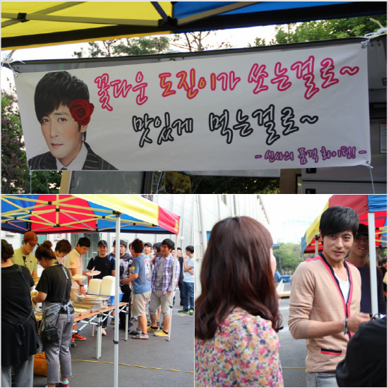 지난 21일 장동건의 팬클럽은 SBS 일산제작센터 내 세트에서 진행된 촬영현장을 찾아 드라마의 대박을 기원하며 고생하는 배우들과 제작진들을 위해 저녁식사 밥차를 대접했다.