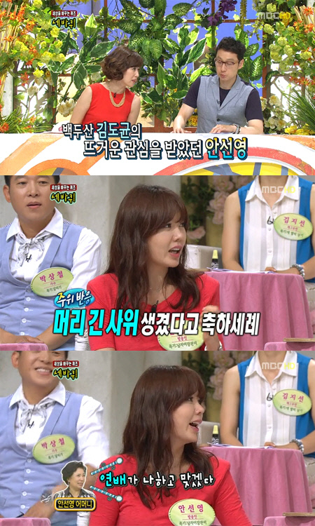 방송인 안선영이 백두산 김도균과의 러브라인에 대한 어머니의 반응을 공개했다.
