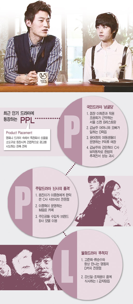 한때 드라마 속 브랜드를 청테이프로 가리는 '묻지마' 홍보가 드라마 PPL의 대세를 이루던 시절이 있었다. 하지만 최근 드라마 속에서는 상표를 가리고 제품을 노출하는 홍보보다는 스토리에 자연스럽게 묻어가는 홍보 전략이 대세로 떠올랐다.