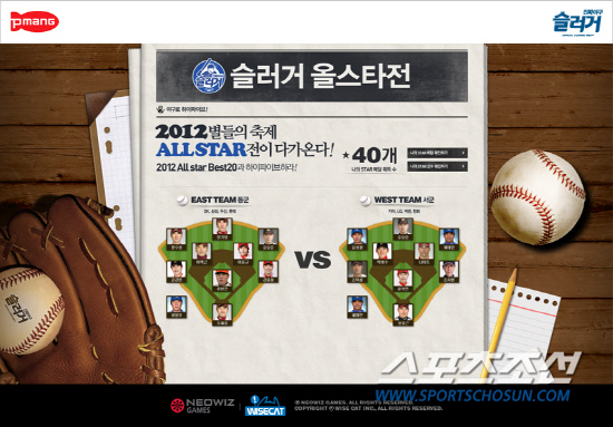 네오위즈게임즈는 온라인 야구게임 '슬러거'를 통해 '2012 프로야구 올스타전 기념 이벤트'를 실시한다.