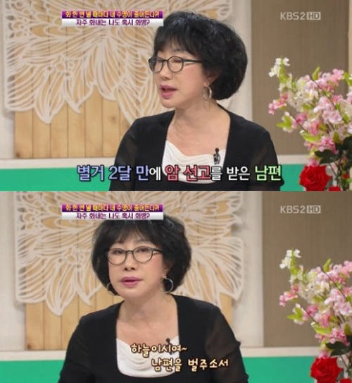 배우 이수나가 남편의 암 선고에 기뻤다는 충격적인 발언을 했다.