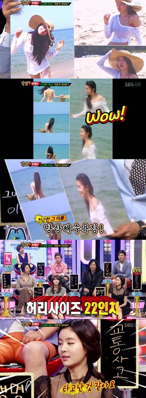지난 26일 방송된 SBS '강심장'에 출연한 한혜린은 최근 화제를 모은 수영복 사진에 대해 설명하며 자신의 허리사이즈를 밝혔다.