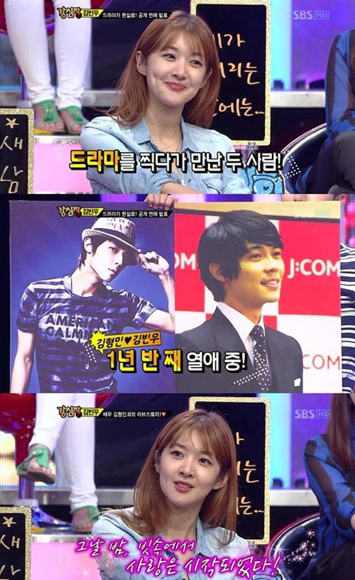 이날 방송에서 김빈우는 "2년 전 KBS 2TV 아침드라마 '엄마도 예쁘다'를 통해 김형민을 처음 만났다. 당시에는 극중 남자친구였는데 이젠 진짜 남자친구가 됐다"고 말문을 열었다.
