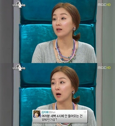 김지혜는 27일 MBC '황금어장-라디오스타'(이하 '라디오스타')에서 "SNS에 올린 이혼 언급은 사실이다"고 밝혔다.