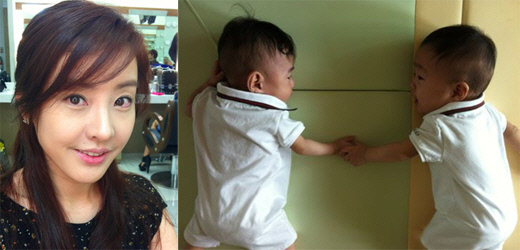 배우 박은혜가 이란성 쌍둥이 아들 사진을 공개했다.