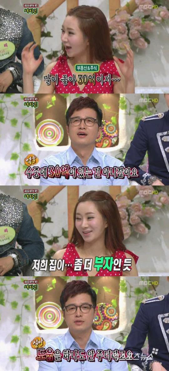 신재은은 "그래서 인터넷을 검색해봤더니 방송에서 30억을 언급한 적이 있었다"면서 "그 30억이란 것이 부동산 주식을 다 합해서 수중에 있는 돈도 아니다. 그리고 이미 주식으로 상당 부분 날렸다"고 설명했다. 이어 "저희 집이 좀 더 부자다"고 결론을 지었다.