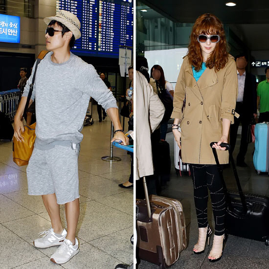 스타엔이 제공한 사진에 따르면, 이날 이병헌은 회색 추리닝 바지에 맨투맨 티셔츠를 매치한 편안한 공항 패션을 선보인 반면 이은희는 블랙 스키니진에 트렌치코트를 입고 킬 힐까지 신은 멋스러운 공항패션을 선보여 눈길을 끌었다.
