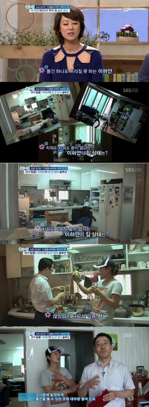 이어 국내1호 정리 컨설턴트 윤선현 씨가 방문한 이하얀의 집은 창고인지 집인지 분간이 안 될 정도로 짐이 잔뜩 쌓여 있고 각종 잡동사니로 심하게 어질러져 있는 모습이었다.