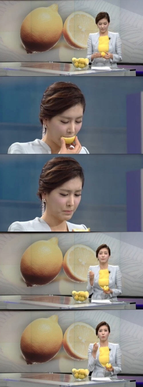 레몬의 신맛 때문에 사레에 걸린 차 아나운서는 멘트를 이어나가던 중 헛기침을 하는 방송사고까지 내고 말았다.