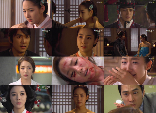 8일 방송된 '닥터진' 8회에는 가슴에 통증을 느낀 영래(박민영)가 진혁(송승헌)에게 유암 진단을 받는 모습이 그려졌다. 당장에 급한 수술이 필요했지만 영래는 경탁(김재중)과의 혼례를 치르지 못할까 걱정돼 치료를 거부했다. 미래에서 사랑하는 연인 미나를 살리지 못한 아픔을 갖고 있는 진혁은 영래가 자신의 운명을 지켜주기 위해 혼사를 택한 것을 알고 한달음에 달려갔다. 그러나 혼례 당일 영래는 집을 떠나 모습을 감췄다.
