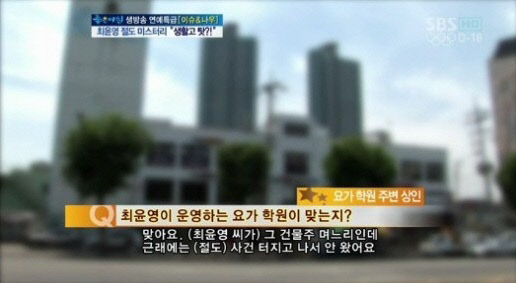 9일 오전 방송된 SBS '좋은 아침'은 최윤영의 자택과 요가학원 등을 찾아가 주변인들의 증언을 들었다. 그 과정에서 최윤영이 거주하고 있는 빌라가 매매가 20억원에 보증금 3억원, 월세 280만원에 이르는 고급주택이라는 사실과 성동구에 위치한 요가학원 또한 건물주가 최윤영의 시댁이라는 것이 밝혀졌다. 또한 최윤영의 남편이 특별한 수익원이 없었다는 보도와는 달리, 해외 유학파 출신의 맹금류 재활치료사로 활동 중이란 사실도 확인됐다.