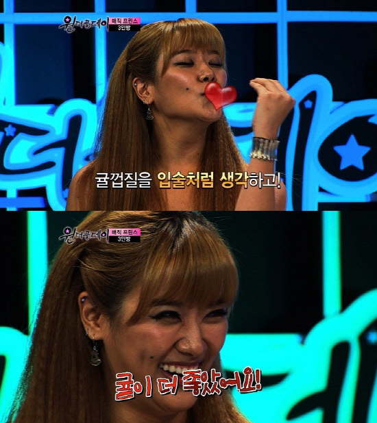 MBC 뮤직 '원더풀데이'를 진행하고 있는 호란이 "귤 키스가 실제 키스보다 좋았다"고 말해 녹화장이 발칵 뒤집혔다.