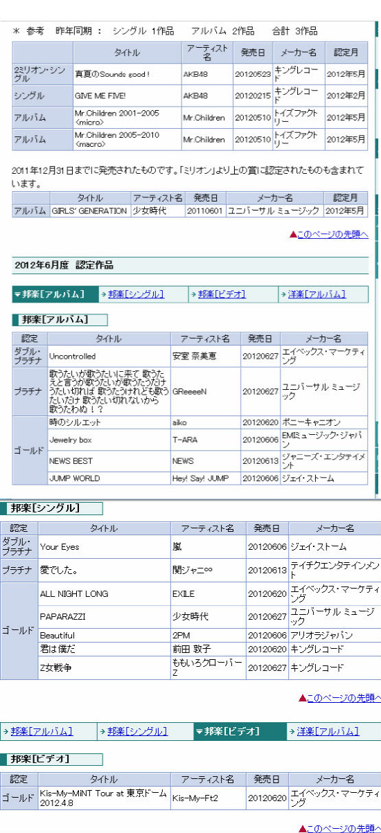 일본 레코드협회는 10일 6월도 골드 등 인증 목록을 발표했다. 이에 따르면 티아라는 6월 6일 발표한 첫 일본 정규 앨범 '쥬얼리 박스'로, 소녀시대와 2PM은 싱글 '파파라치'와 '뷰티풀'로 골드 인증을 획득했다. 골드 인증은 10만 장 이상의 판매고를 올린 앨범에게 부여되는 기록. 한 달 동안 무려 3팀이나 골드 인증에 성공하면서 K-POP의 인기를 실감케 했다.