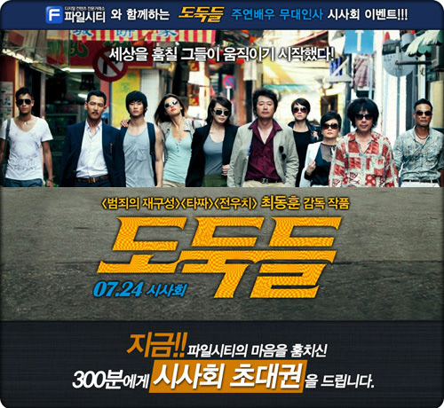디지털 컨텐츠 전문 거래소 파일시티(www.filecity.co.kr)가 영화 '도둑들' 무료 시사회 이벤트를 진행한다.