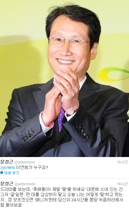 문 상임고문은 13일 자신의 트위터에 "드라마를 보는데 '후배들아! 제발 '말'을 하세요' 대본에 쓰여 있는 건 그저 '글'일뿐. 먼 데를 상상하지 말고 오늘 나는 어떻게 '말'하고 왔는지"라고 일갈했다. 그러면서 작심한 듯 "정 모르겠으면 '매니저'한테 당신의 24시간을 몽땅 녹음하라 해서 함 들어보셈"이라고 덧붙였다.