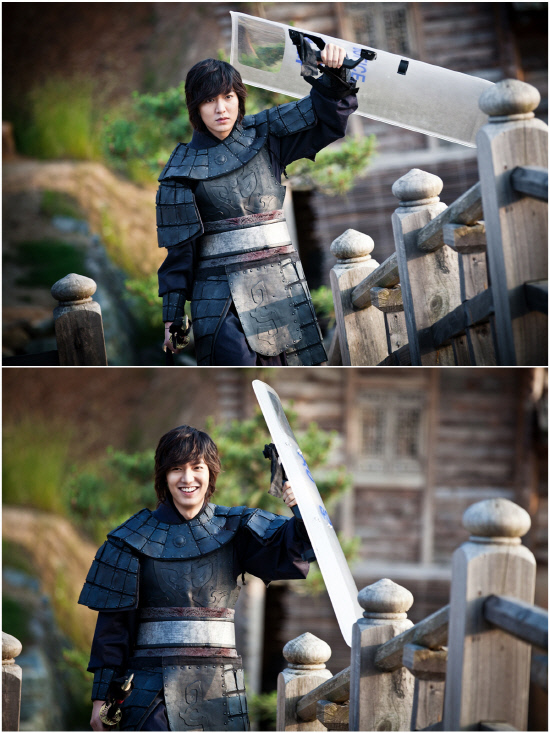 SBS 새 월화극 '신의'의 이민호가 고려시대 무사복을 입고 경찰 방패를 들고 있어 눈길을 끌고 있다.