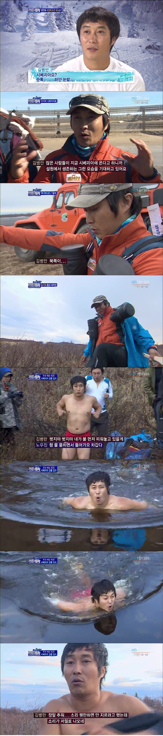 개그맨 김병만이 예능 최초로 시베리아 얼음물 입수라는 대기록을 남겼다.