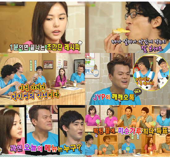 뿐만 아니라 '해투' 고정 패널인 G4의 최효종 또한 박진영의 미숫가루에 박진영의 삶이 녹아 있다는 듯 억지로 사연이 있고, 추억이 있는 음식으로 만들려는 노력이 있었다. 분위기가 민효린의 참치 토스트 레시피에서 박진영으로 넘어가는 중간 단계가 된 지점이었다.
