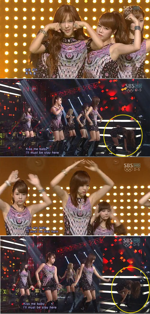 티아라 효민이 생방송 무대에서 넘어지는 실수로 팬들을 깜짝 놀라게 했다.