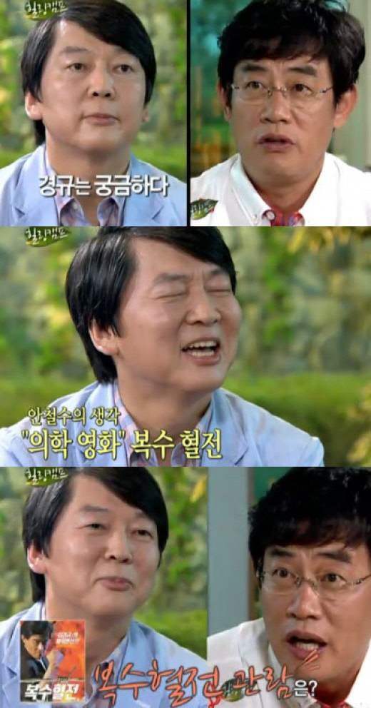대선출마 여부로 주목받고 있는 안철수 서울대 교수가 '힐링캠프'에 출연해 예상 밖의 유머를 선보였다.