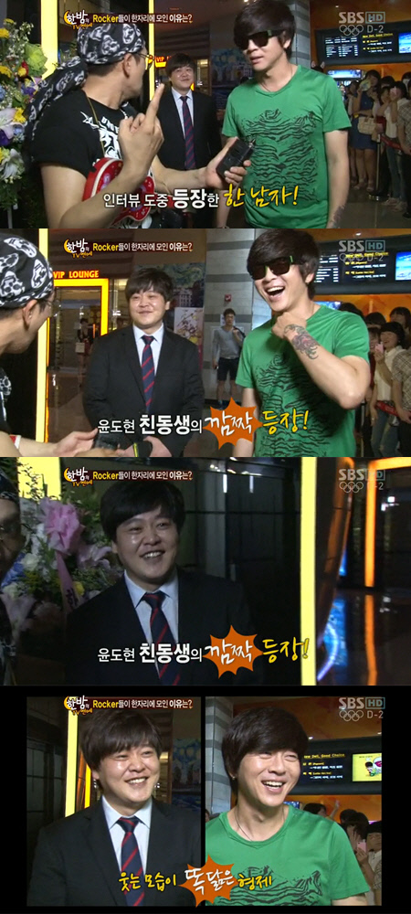 이를 본 리포터는 "이분은 누구시냐"며 물었고, 윤도현은 "내 친동생이다"라며 소개했다.