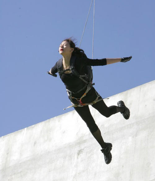 실제로 전지현은 전신 타이즈를 입고 과감히 아찔한 5층 높이의 건물에서 뛰어 내리며 와이어 액션을 펼쳐, 보고 있던 제작진들의 감탄을 자아내기도 했다.