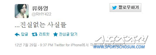 '진실없는 사실들'이라는 글을 자신의 트위터에 올렸고, 이는 김광수 대표가 오후 1시 "티아라 내에 불화나 왕따는 없으며 화영은 모든 스탭들의 뜻에 따라 계약을 해지한다"는 보도자료를 언론사에 전송한 직후이다.