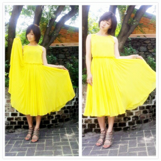 배우 박효주가 자신의 SNS를 통해 상큼한 옐로우빛 드레스를 입고 있는 사진을 공개했다.