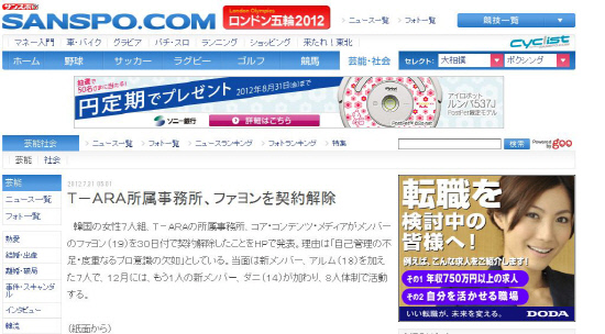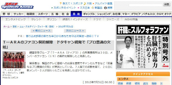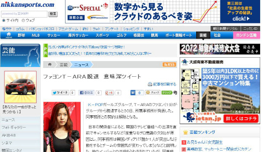 일본 언론들도 티아라 멤버 화영의 계약 해지 사태에 높은 관심을 드러냈다.