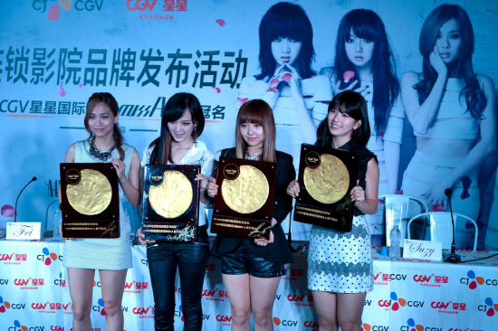 미쓰에이는 지난 28일 중국 심양 CGV 싱싱 국제 영화관 중지에점에서 전용브랜드관 오픈 기념 기자회견 및 스페셜 이벤트를 실시했다.
