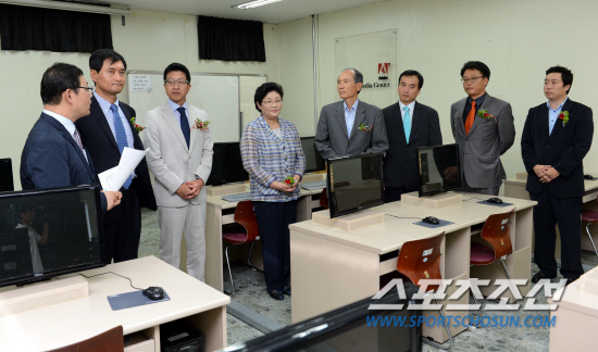 ◇1일 경남대학교 평생교육관에서 열린 게임개발교육원 개원식에서 경남대 박재규 총장 등 참석인사들이 실습실을 둘러보고 있다. 마산=허상욱 기자 wook@sportschosun.com