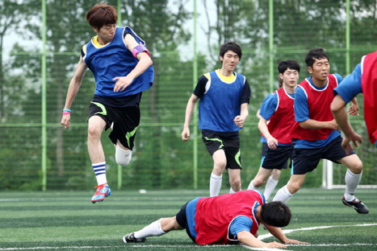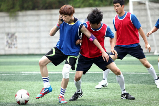 이현우는 최근 잔디구장을 종횡무진 누비며 축구공을 자유자재로 드리블하거나 온 몸을 날려 상대 선수의 태클을 피해내는 등 실제 축구 선수를 연상시키는 장면을 촬영했다.