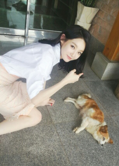 다비치 강민경이 더위에 지친 강아지와 함께 찍은 사진을 공개했다.